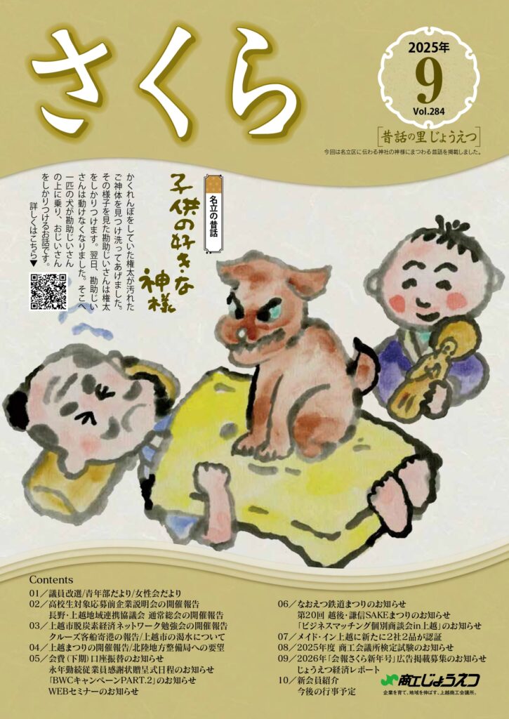 会報「商工じょうえつ・さくら」は、会員事業所約2,100社に送付され、上越商工会議所の事業活動はじめ、地域情報、補助金・助成金といった支援制度などをお知らせしています。